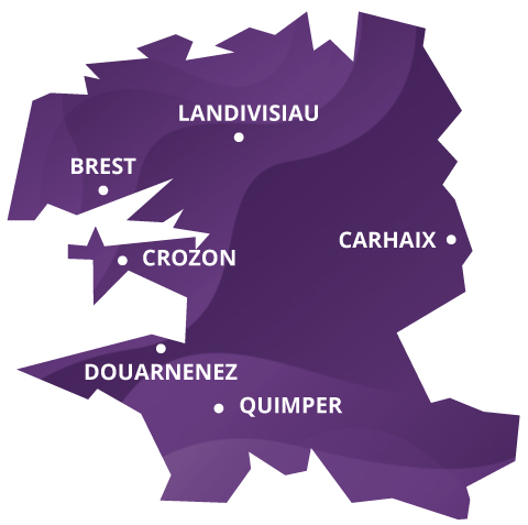 Nous intervenons dans tout le Finistère : Brest, Quimper, Crozon, Morlaix, Carhaix, Douarnenez, Plougastel Daoulas, Plouguerneau, Concarneau, Lesneven, Le Conquet, etc.